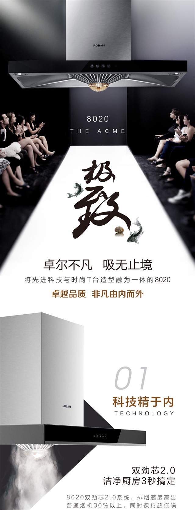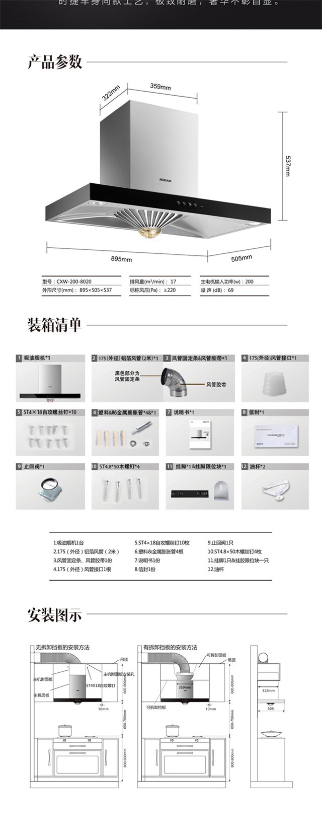 ROBAM/老板 17排风量经典大吸力烟灶套装8020+7B13/7G05 免拆洗