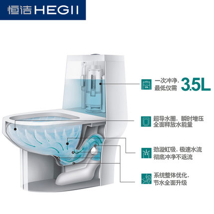 HEGII恒洁 家用卫生间防臭连体陶瓷洁具超旋风马桶坐便器142D