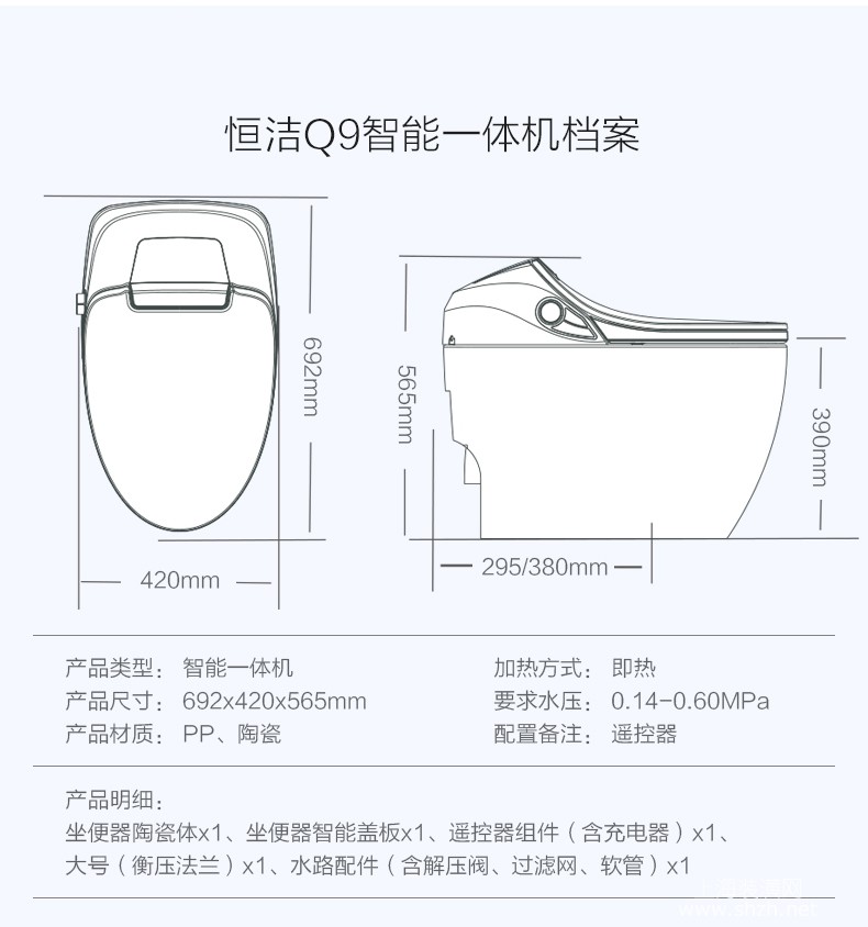 HEGII恒洁卫浴 新款多功能全自动即热式家用智能马桶一体机 Q9
