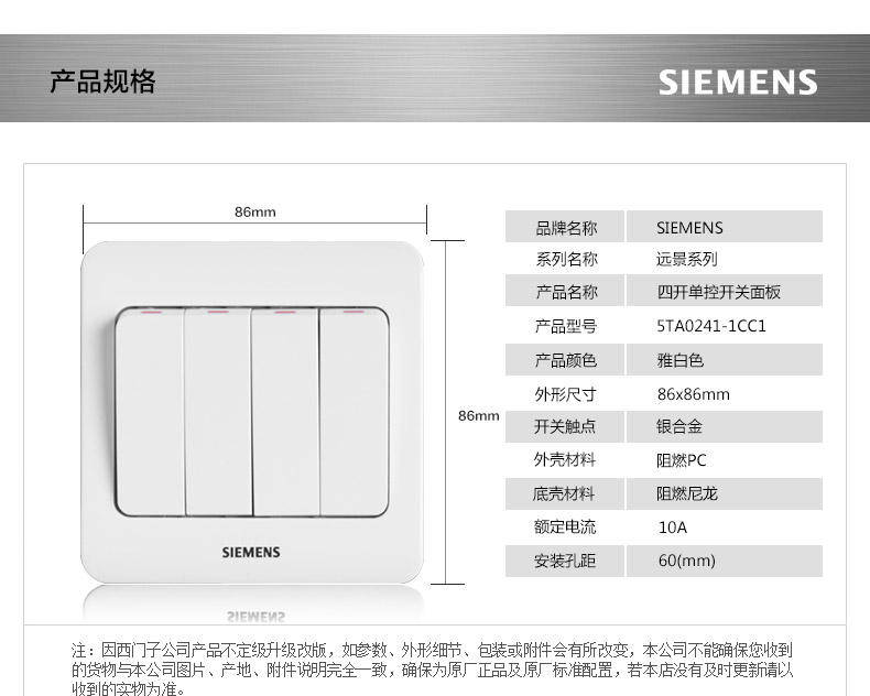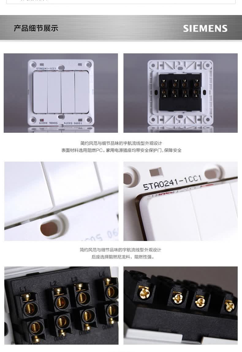 西门子(SIEMENS) 西门子开关插座面板远景雅白色四开(四开单控四联单控)开关面板