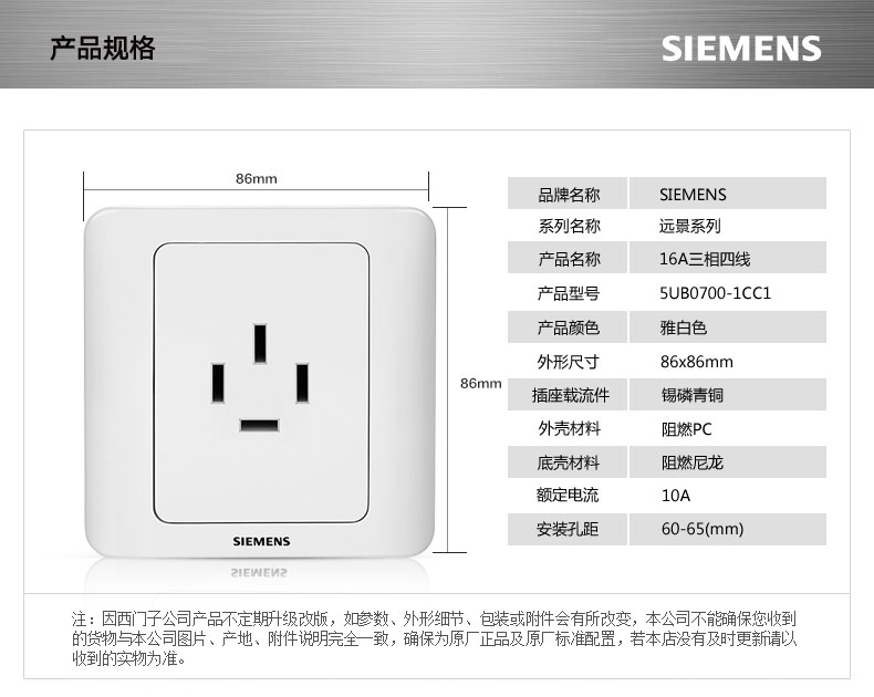 西门子开关插座旗舰店面板 远景系列雅白色单开一开单控(单开单控/单联单控)开关面板