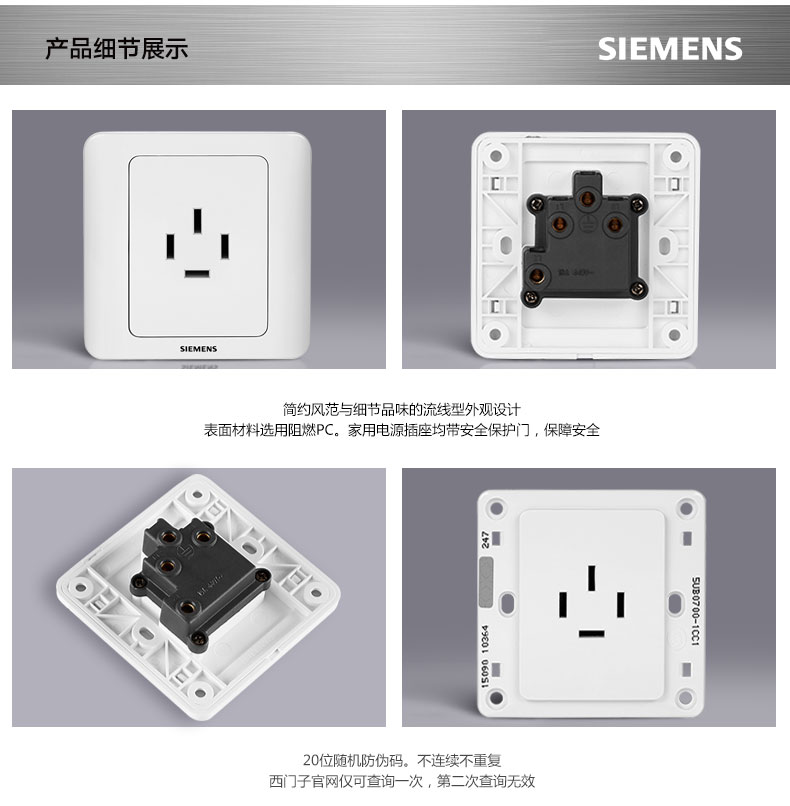 西门子(SIEMENS) 西门子开关插座面板远景系列雅白色双开(二开单控/双联单控)