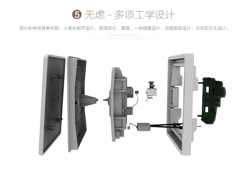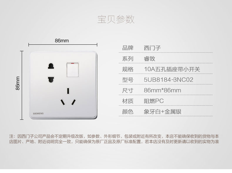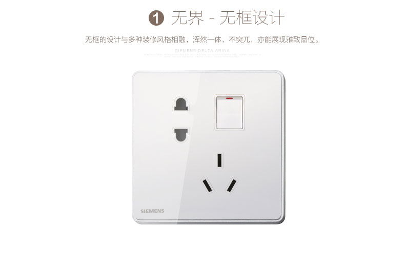 西门子(SIEMENS) 西门子开关插座面板 官方旗舰店电源插座睿致系列象牙白钛银睿智插座 一开斜五孔