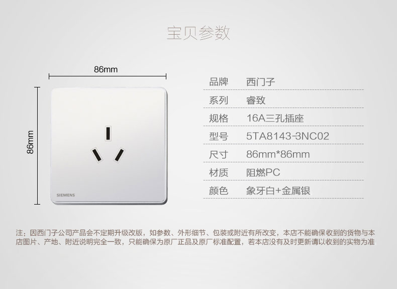 西门子(SIEMENS) 开关插座面板 16A三孔插座 睿致系列象牙白钛银睿智插座