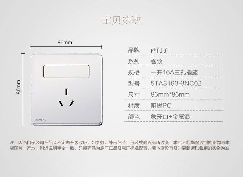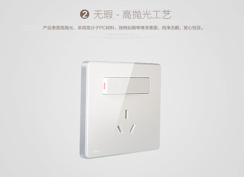 西门子(SIEMENS) 西门子开关插座面板 16A三孔带开关 睿致系列象牙白钛银睿智插座
