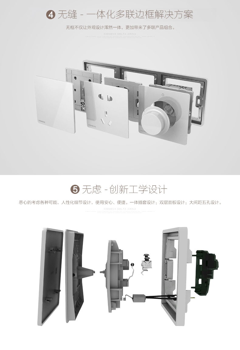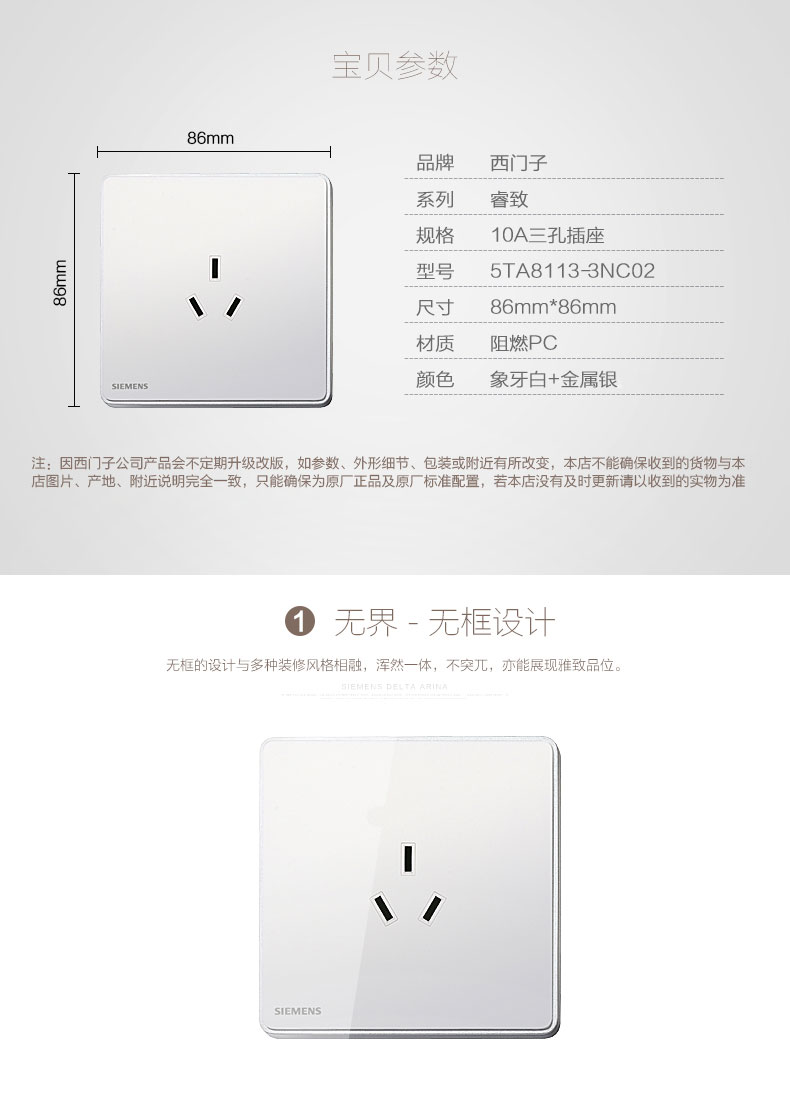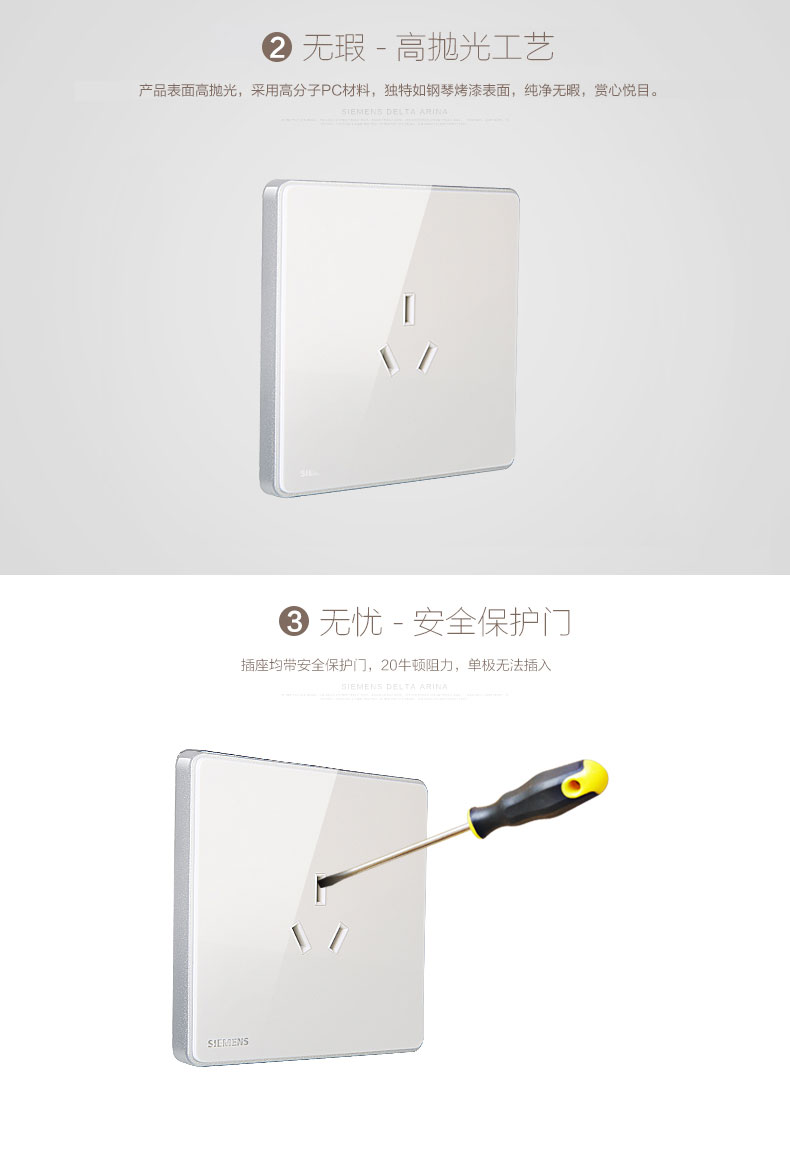 西门子(SIEMENS) 开关插座面板 10A三孔插座 睿致系列象牙白钛银睿智插座