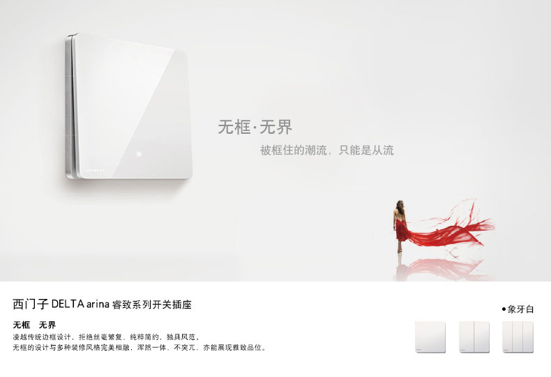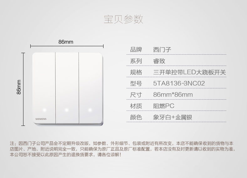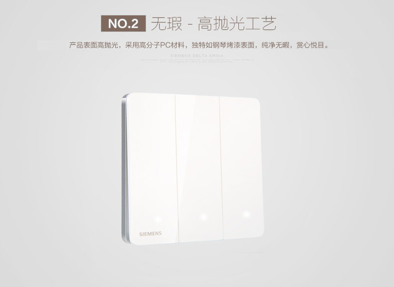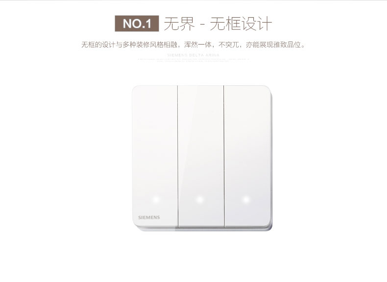 西门子(SIEMENS) 开关插座面板三开单控LED指示灯睿致系列象牙白钛银睿智