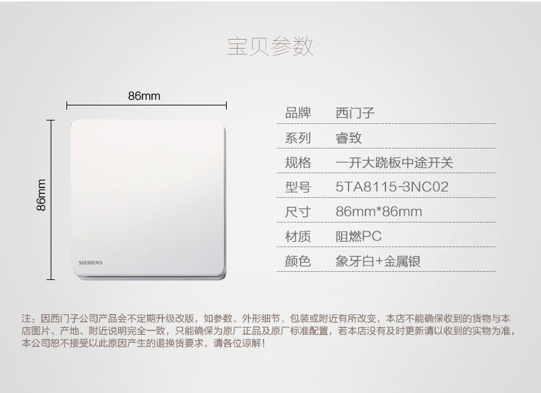 西门子(SIEMENS) 开关插座面板一开多控中途中控开关睿致系列象牙白钛银睿智