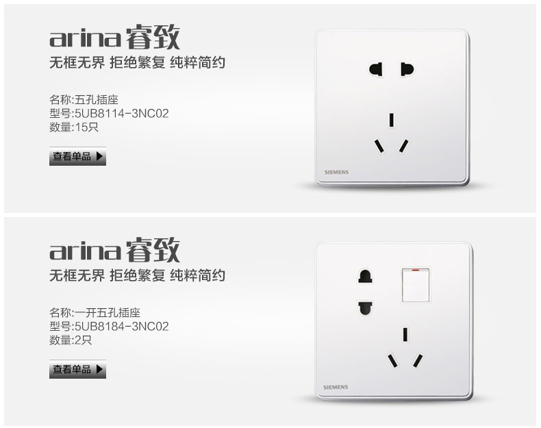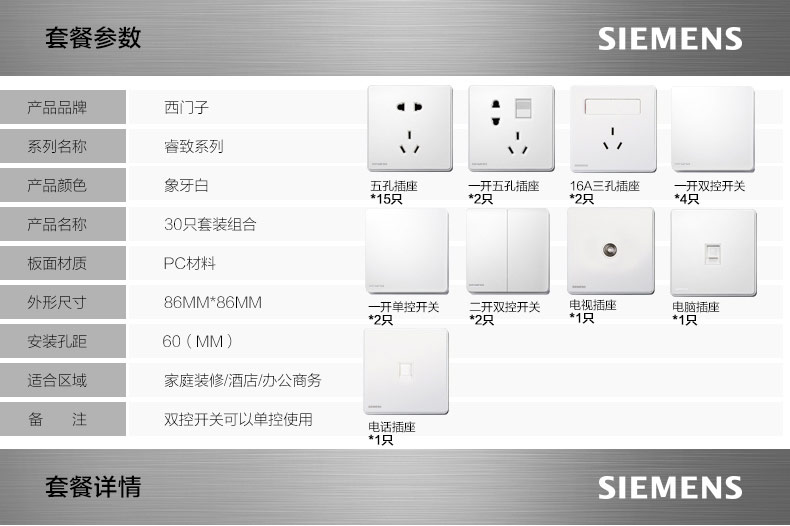 西门子(SIEMENS) 西门子开关插座面板 30只套餐 睿致系列象牙白钛银睿智