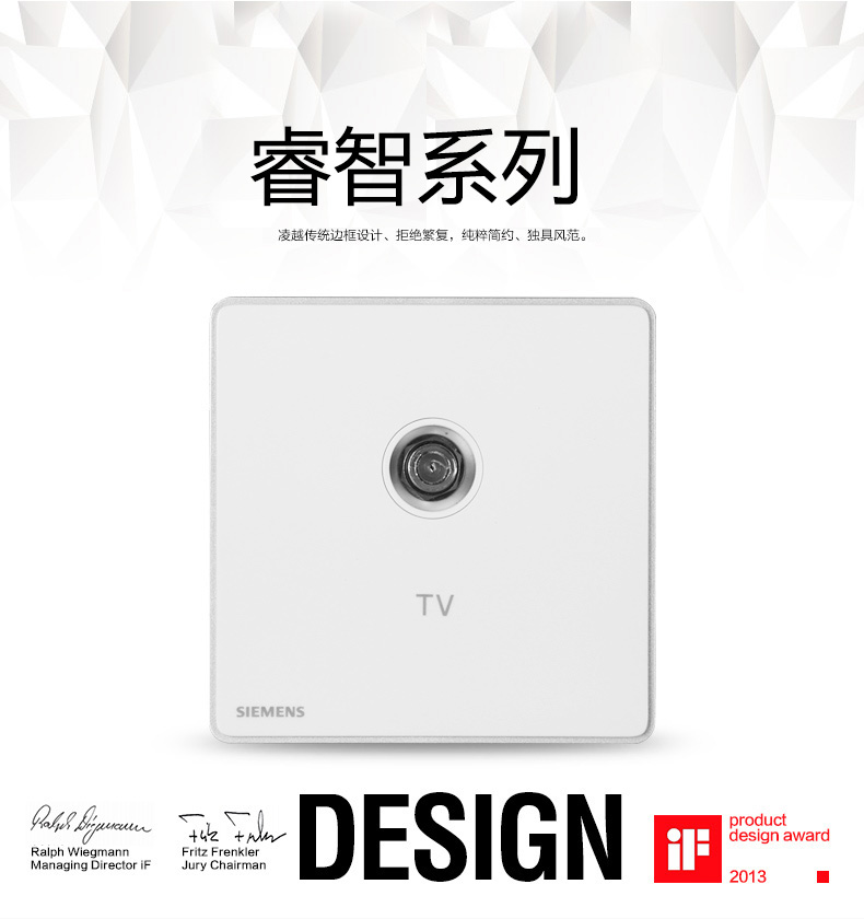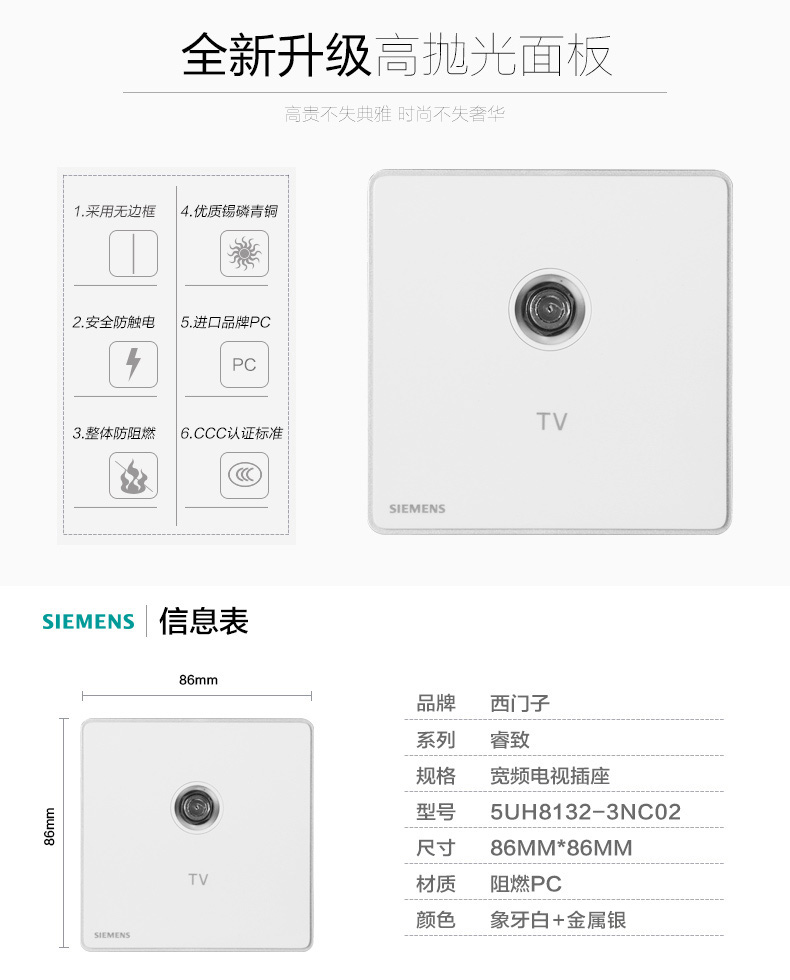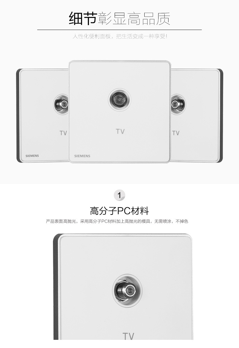 西门子(SIEMENS) 西门子开关插座面板 宽频电视插座 睿致系列象牙白钛银