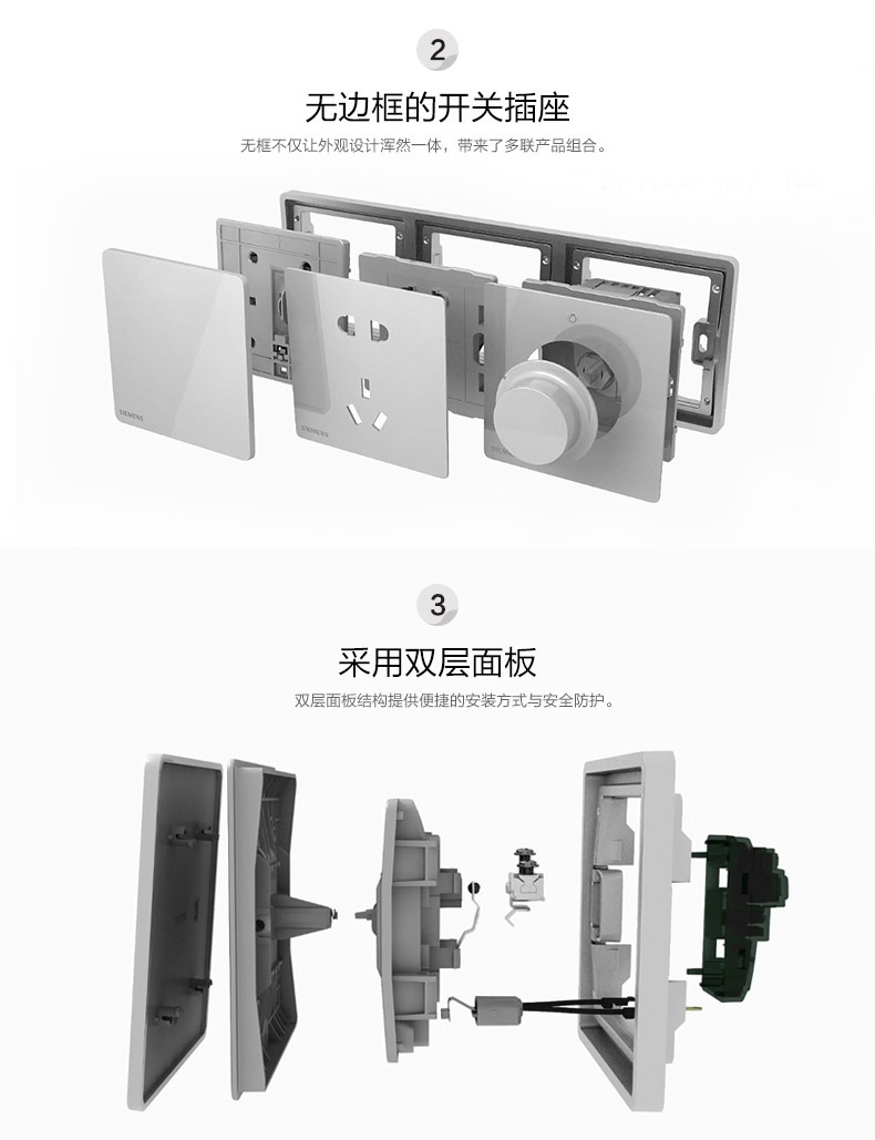 西门子(SIEMENS) 西门子开关插座面板远景系列雅白色双开(二开单控/双联单控)