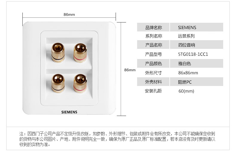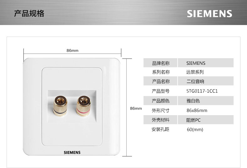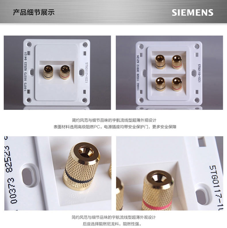 西门子(SIEMENS) 西门子开关插座面板 官方旗舰店 远景系列雅白音响音频插座 二位音响