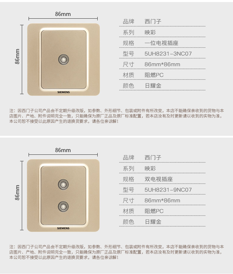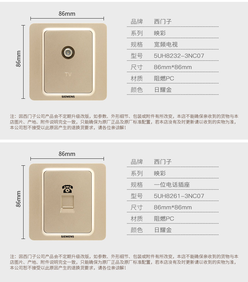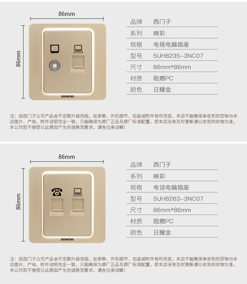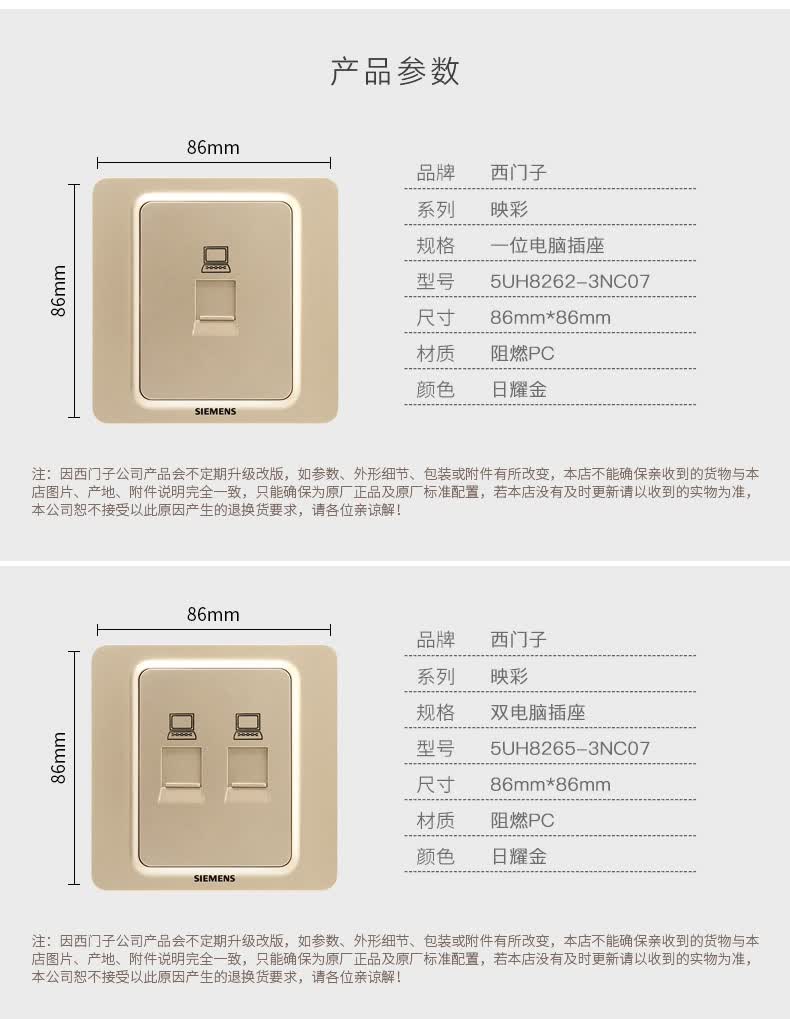 西门子(SIEMENS) 开关插座面板 映彩系列日耀金色弱电产品 电脑网插