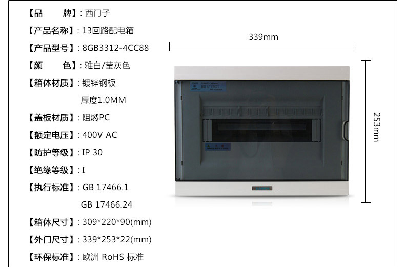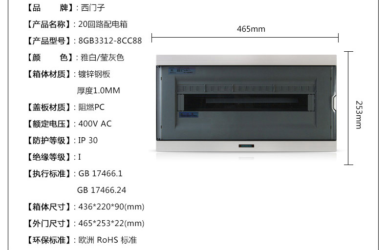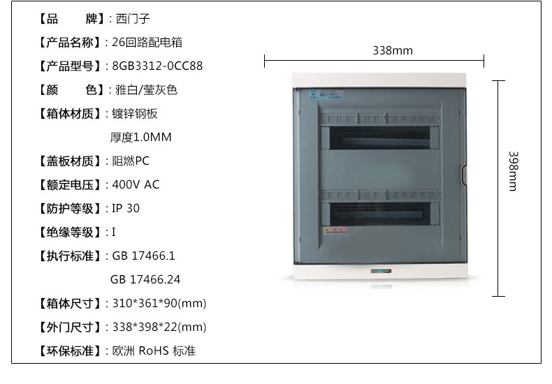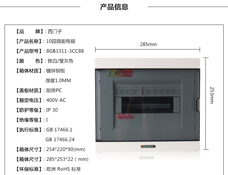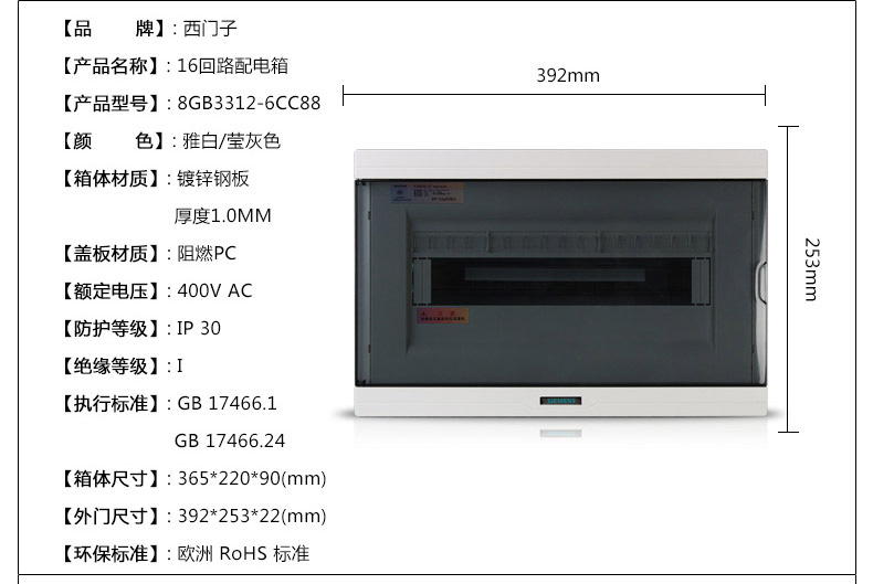 西门子(SIEMENS) 西门子暗装配电箱布线箱 家用空气开关 强电箱透明盖配电箱 16回路