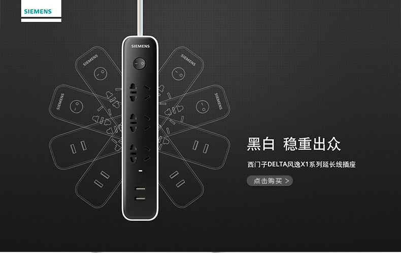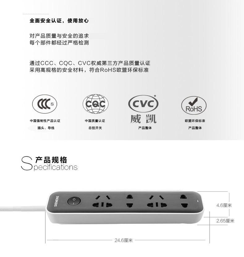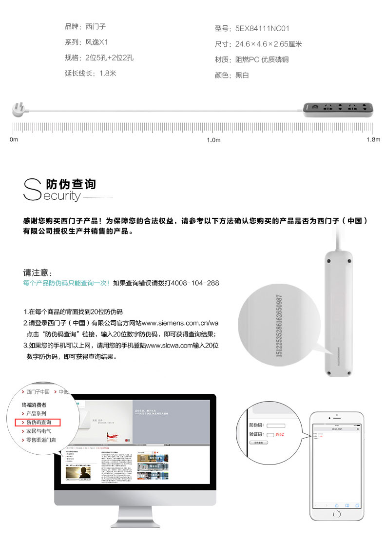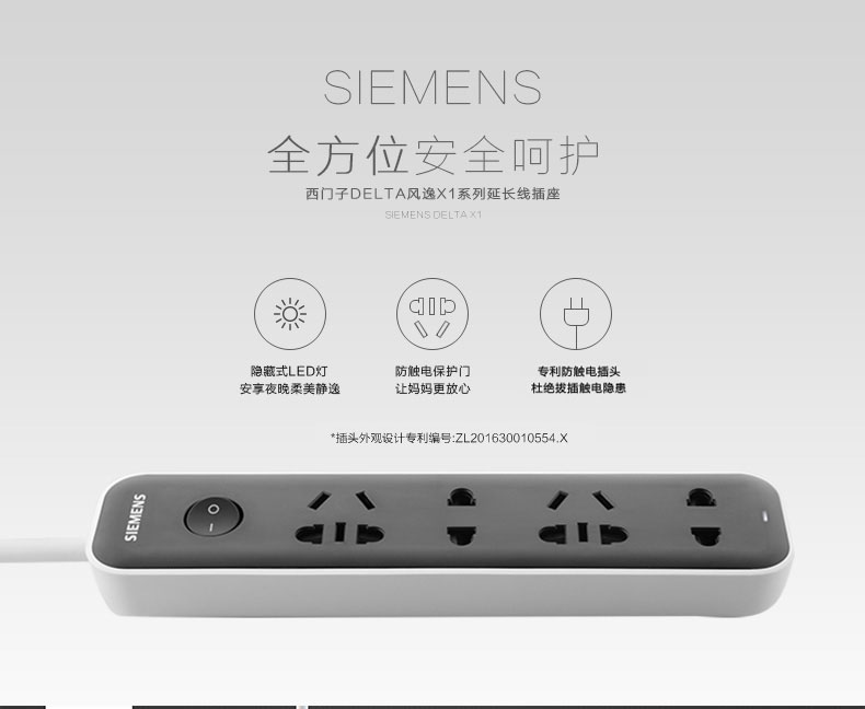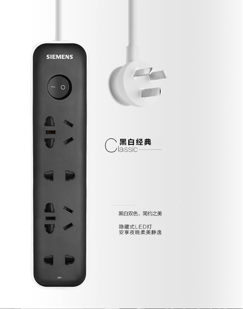 西门子(SIEMENS)插座 接线板插排电源插线板1.8米4位排插