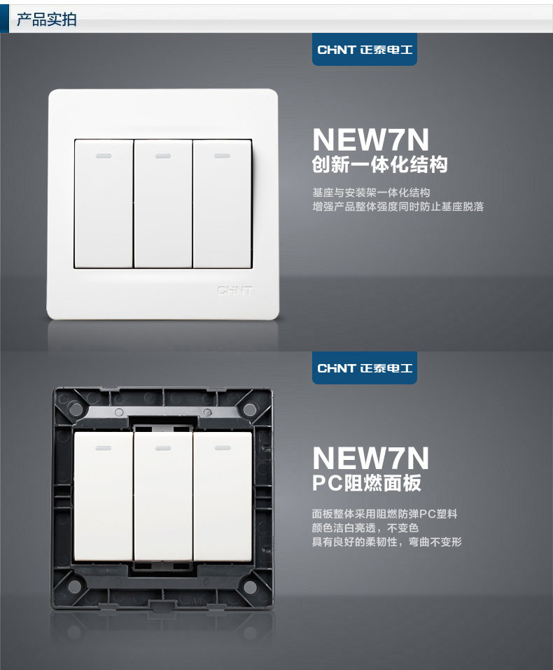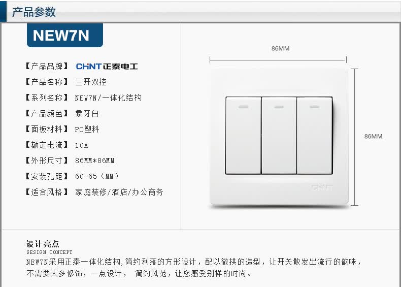 正泰(CHNT) 正泰电工 86型墙壁开关面板 NEW7N象牙白 三位开关 三开单控