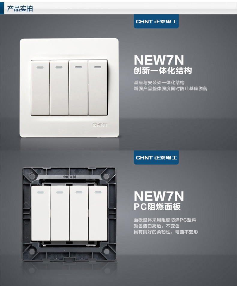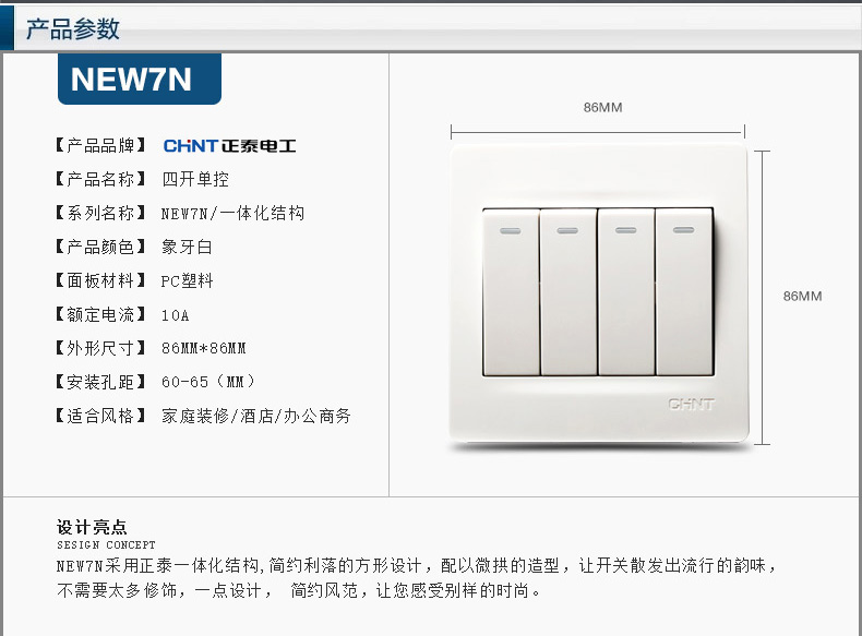 正泰(CHNT) 正泰电工 86型墙壁开关面板 NEW7N象牙白 四位开关 四开单控