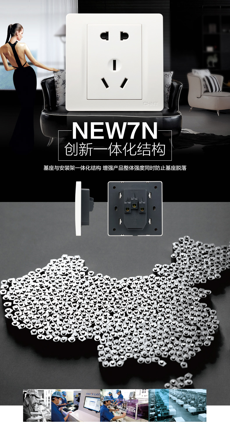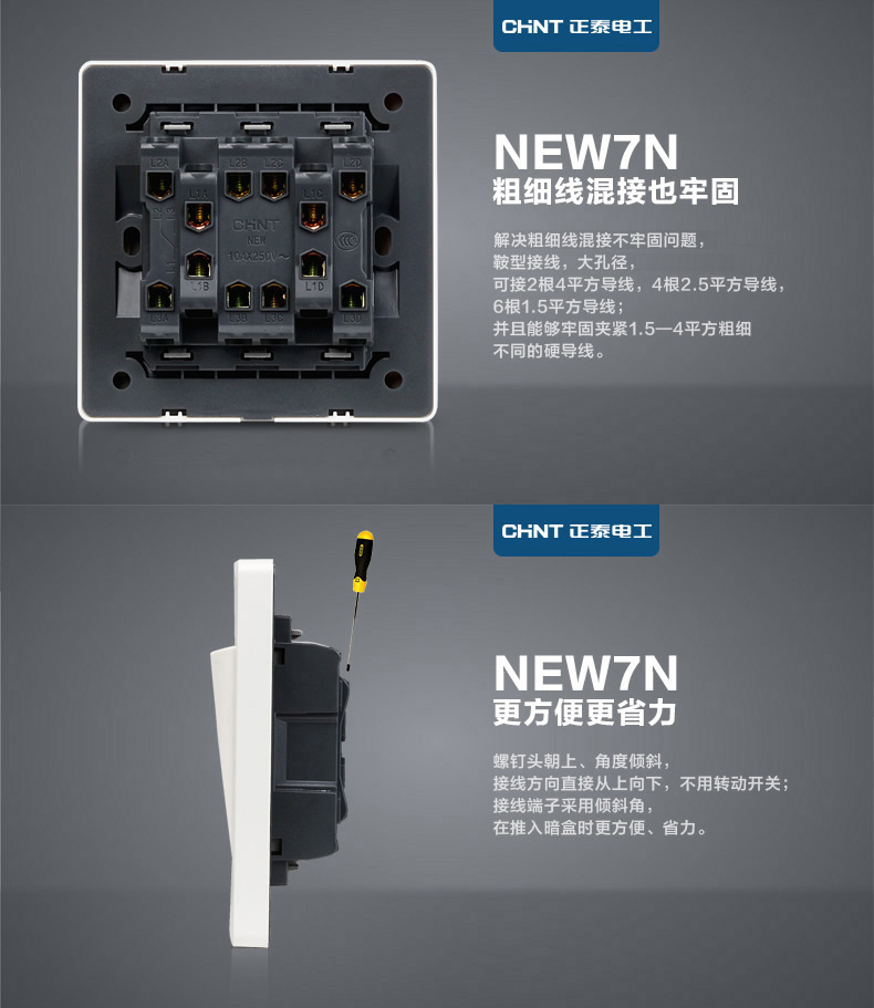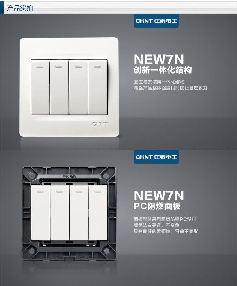 正泰(CHNT) 正泰电工 86型墙壁开关面板 NEW7N象牙白 四位开关 四开双控