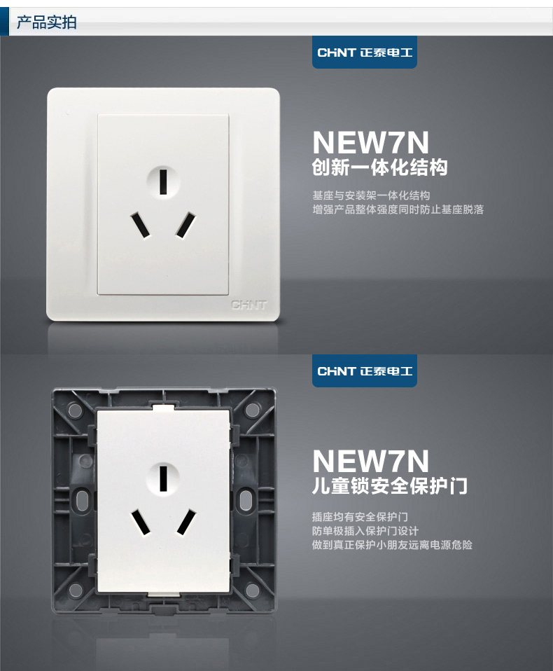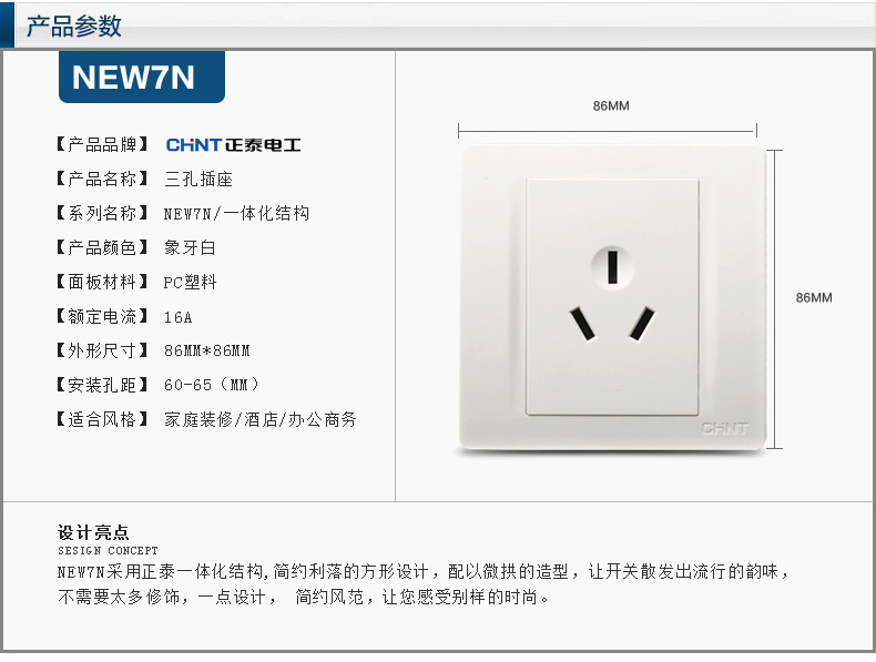 正泰(CHNT) 正泰电工 86型墙壁开关插座 NEW7N象牙白 三孔16A插座面板