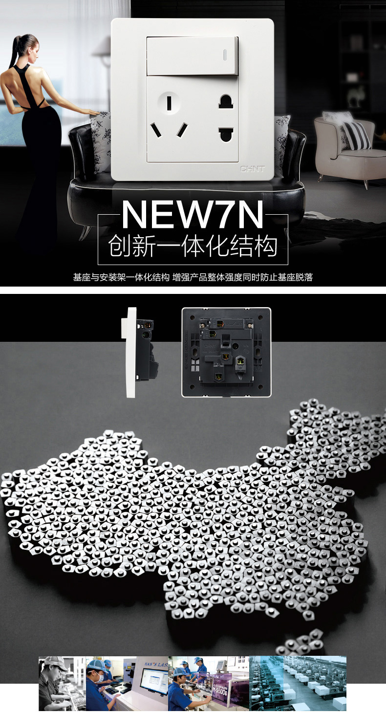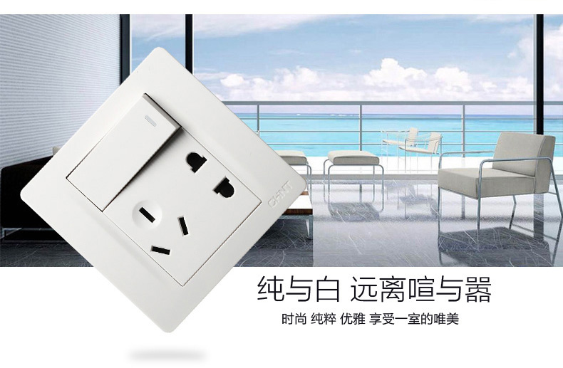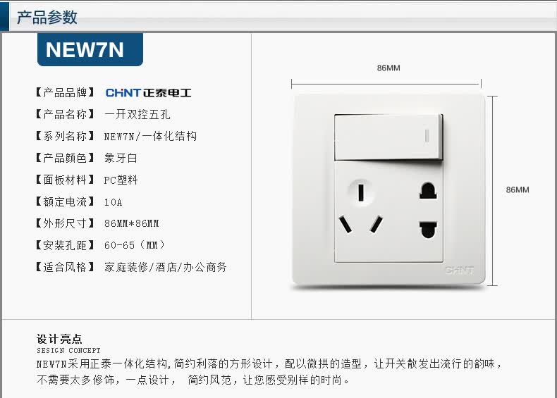 正泰(CHNT) 正泰电工 86型墙壁开关面板 NEW7N象牙白 一开五孔双控