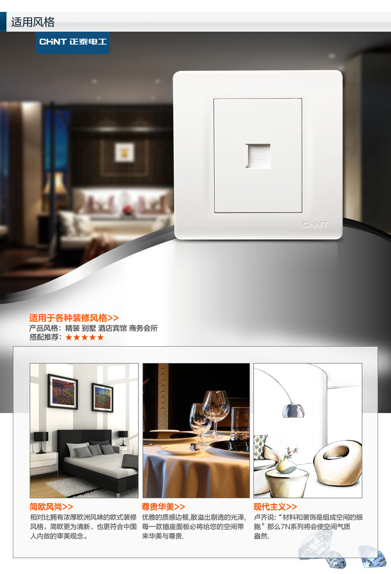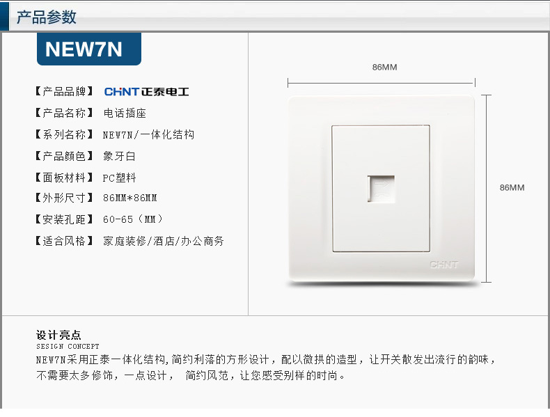 商品名称:正泰(CHNT) 正泰电工 86型墙壁开关插座 NEW7N象牙白 电话插座面板