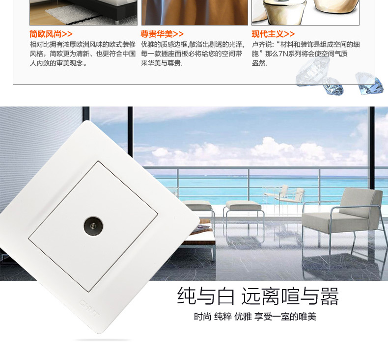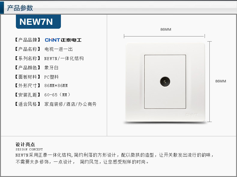 正泰(CHNT) 正泰电工 86型墙壁开关插座 NEW7N象牙白 电视插座一进一出
