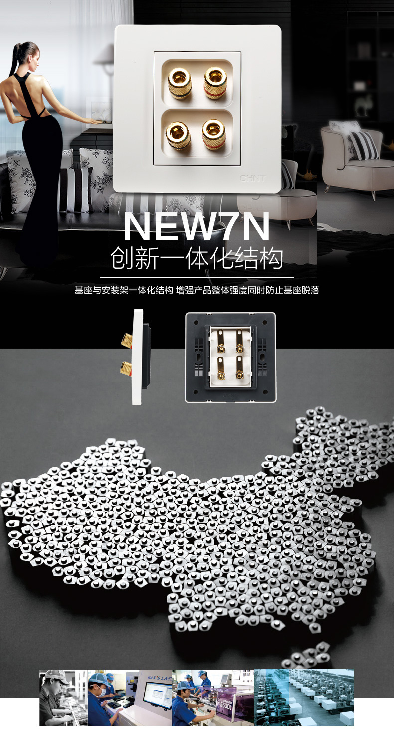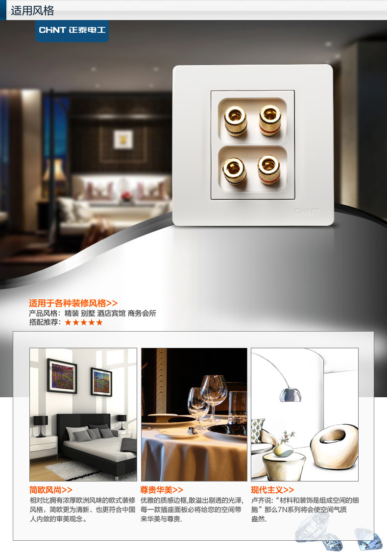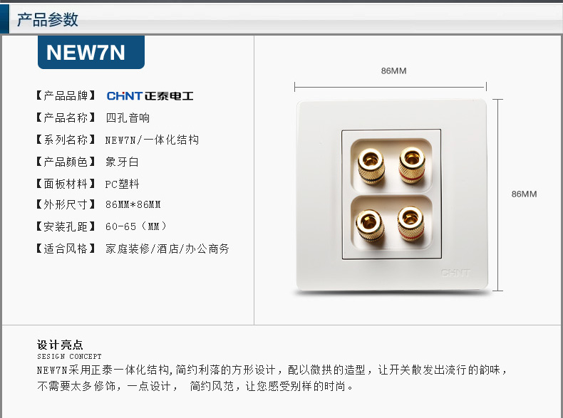 正泰(CHNT) 正泰电工 86型墙壁开关面板 NEW7N象牙白 四孔音响