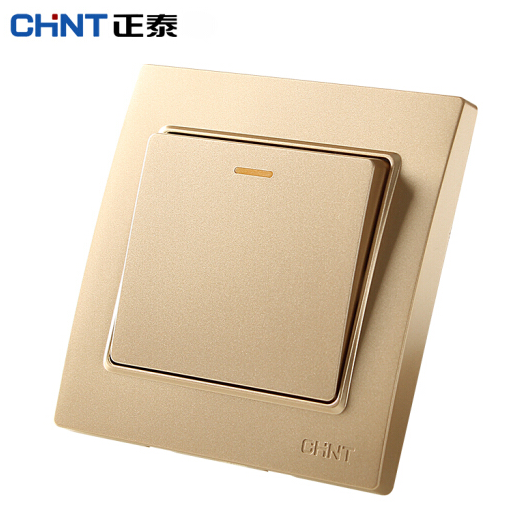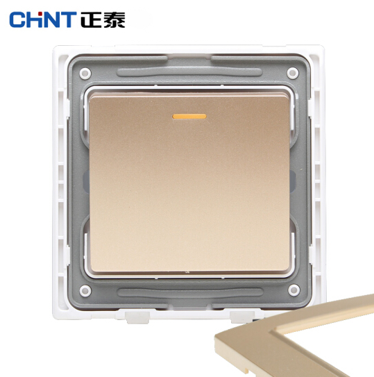 正泰(CHNT) 正泰电工钢架墙壁开关插座面板 NEW7L香槟金色 一开多控面板开关