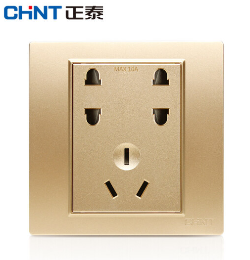 正泰(CHNT) 正泰 钢架墙壁开关插座 NEW7L香槟金色 墙面插座 五孔插座 七孔插座