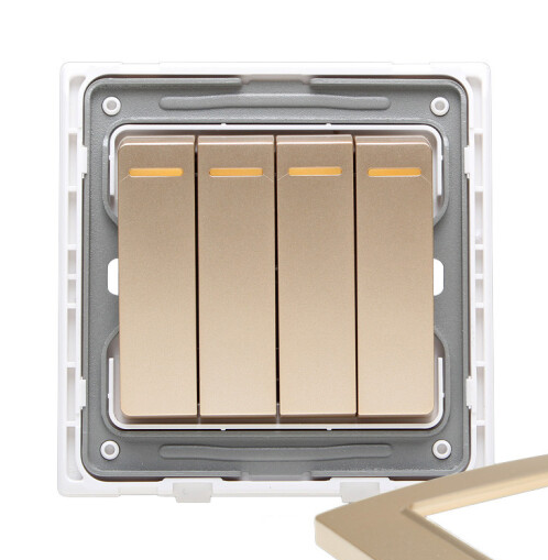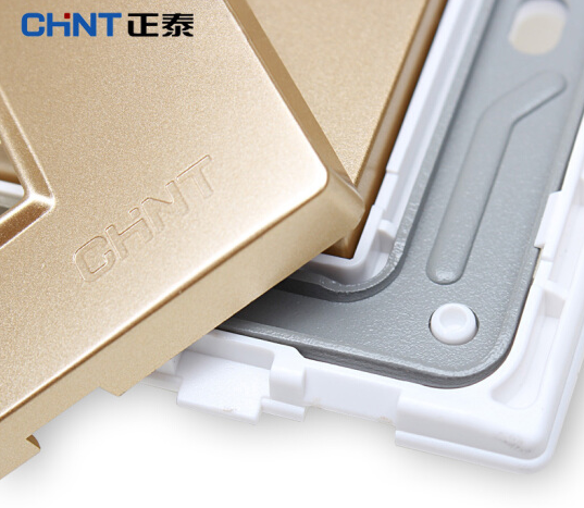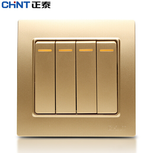 正泰(CHNT) 正泰 钢架墙壁开关插座 NEW7L香槟金色 墙面插座 五孔插座 四开双控