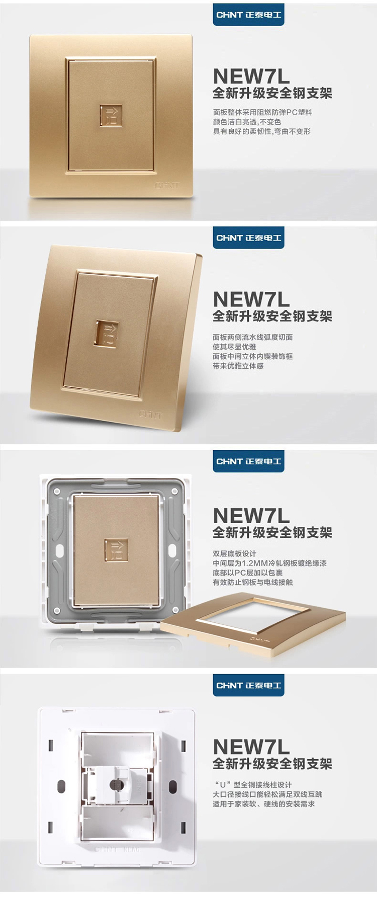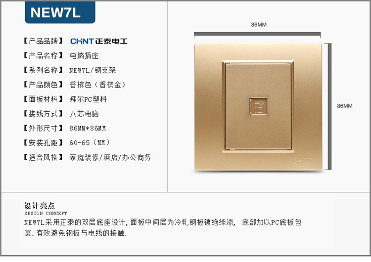 正泰(CHNT) 正泰钢架墙壁开关插座面板 网线插座 NEW7L香槟金色 电脑插座面板