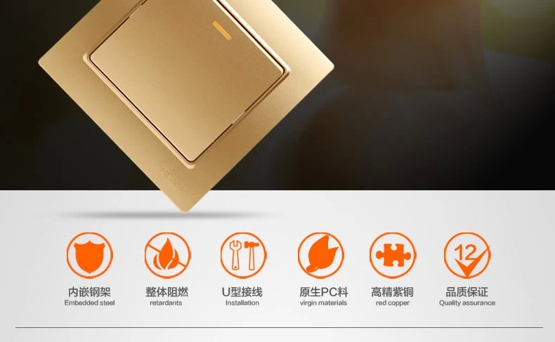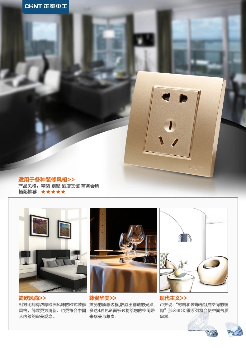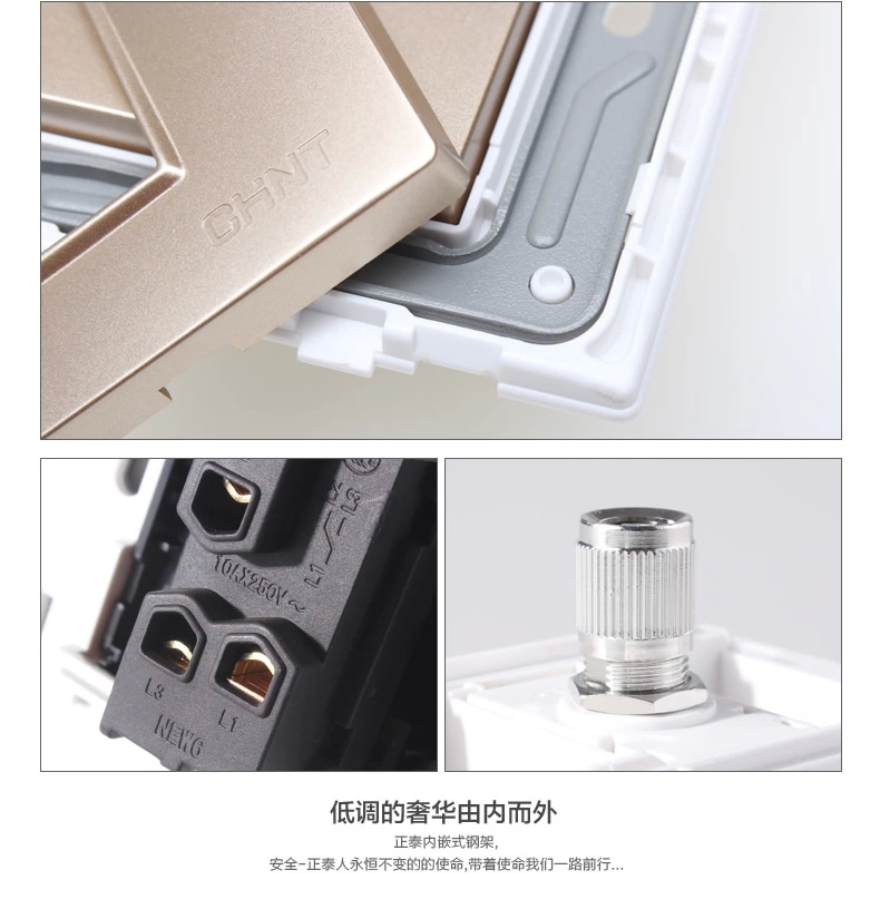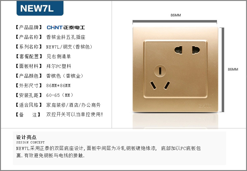 正泰(CHNT) 正泰开关插座面板 7L香槟金色 斜五孔插座10只