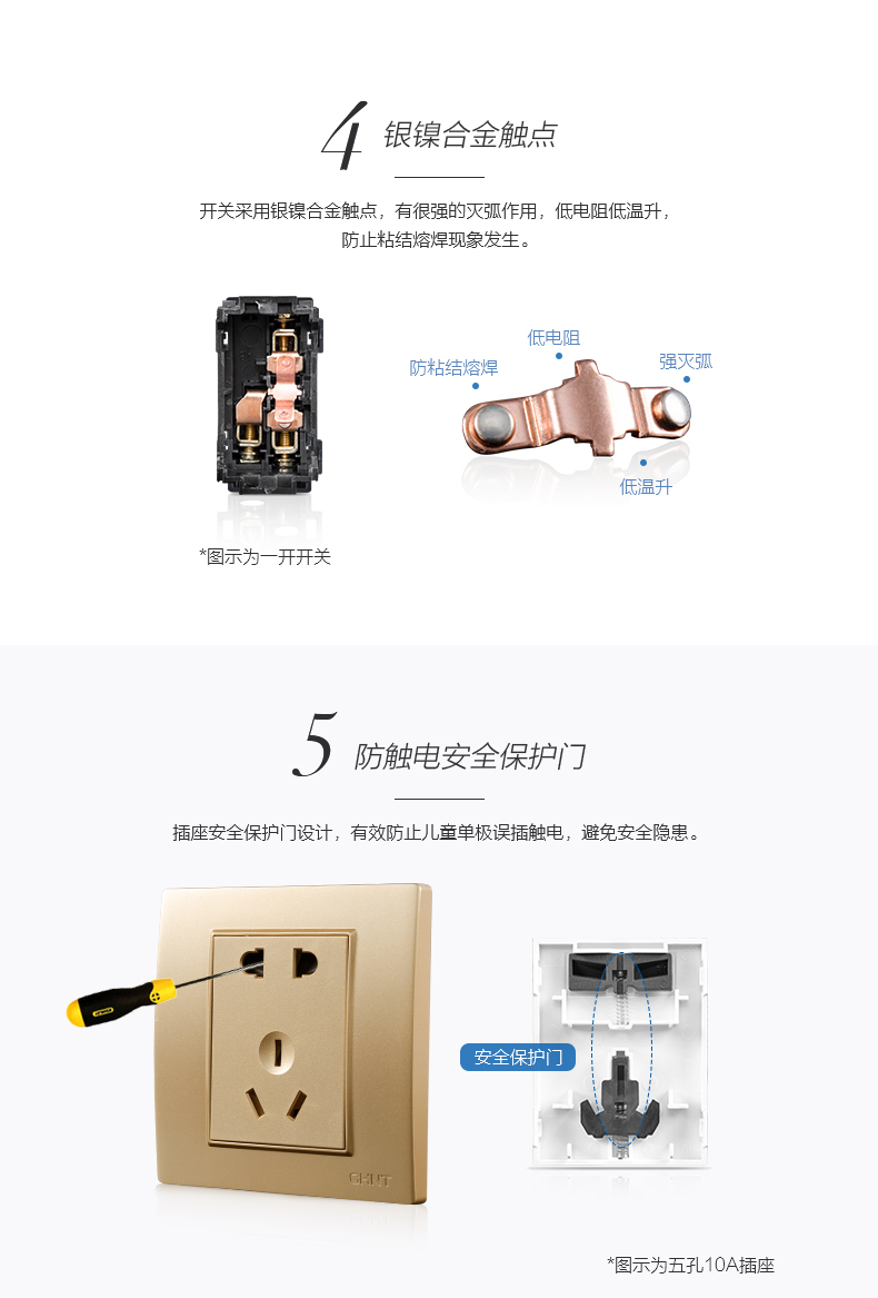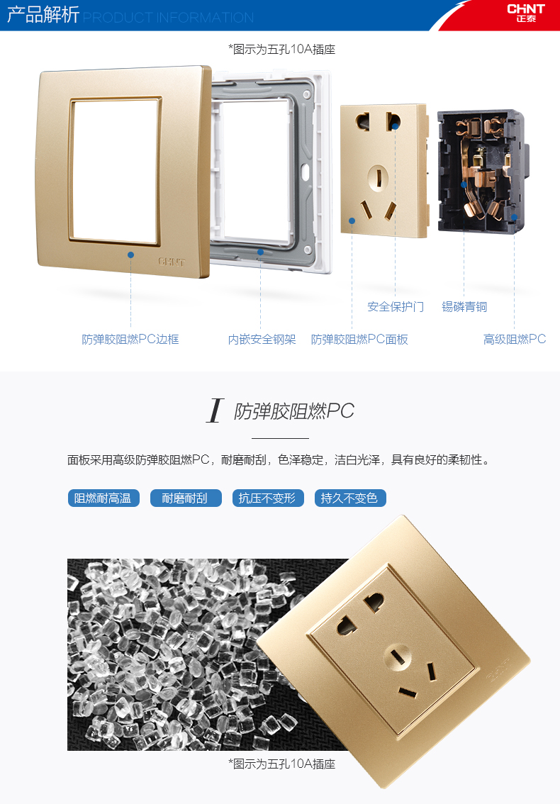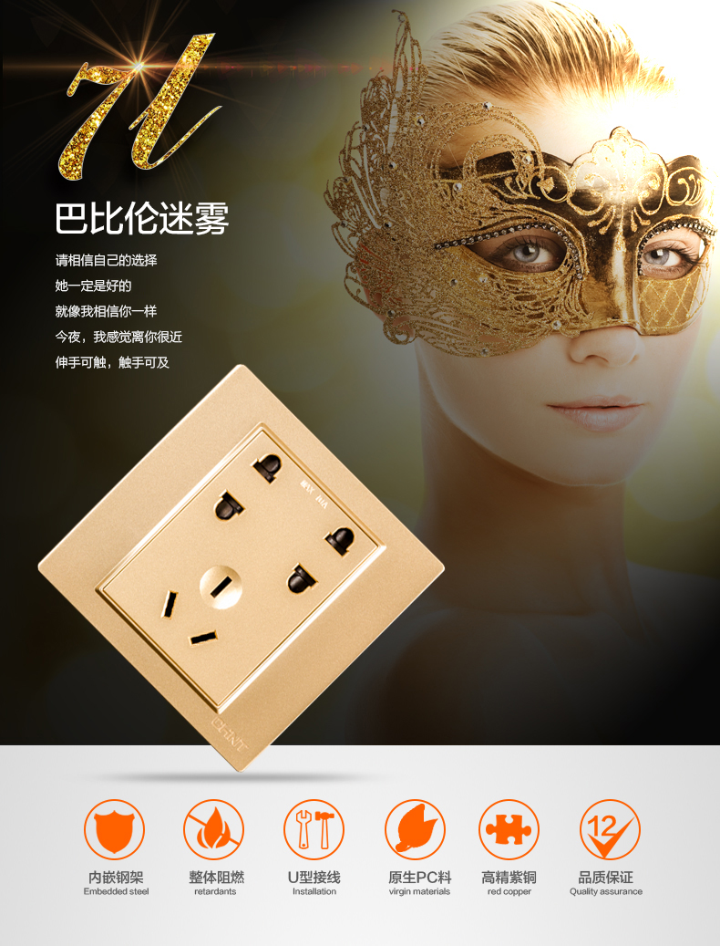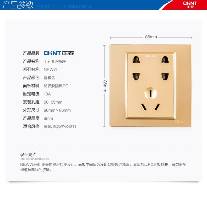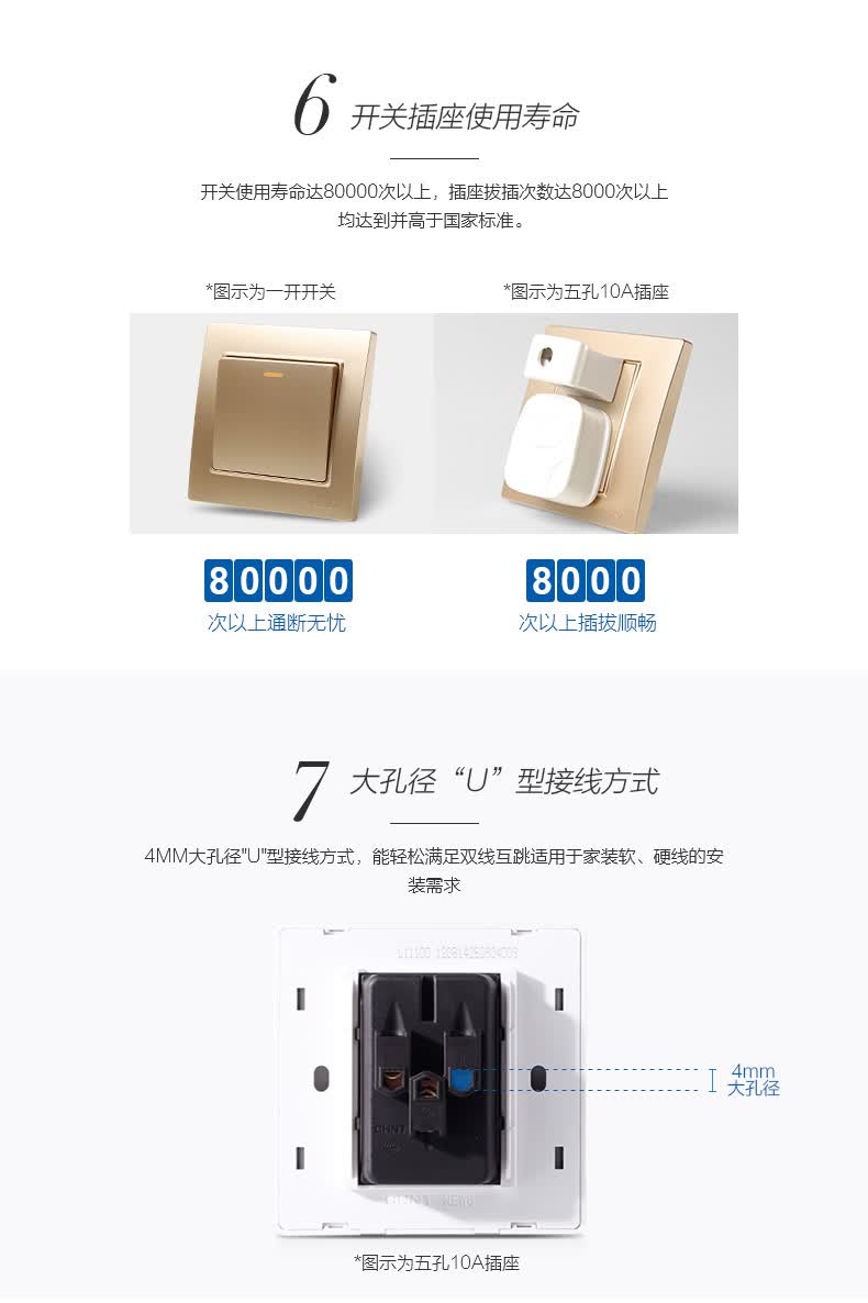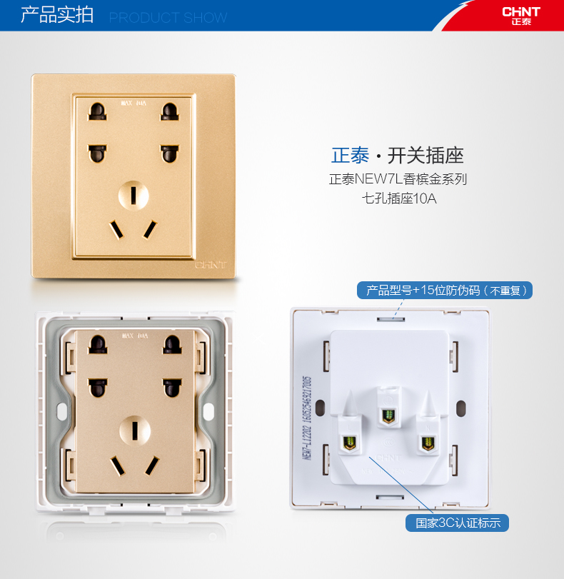 正泰(CHNT) 正泰开关插座 7L香槟金七孔插座内嵌钢架插座