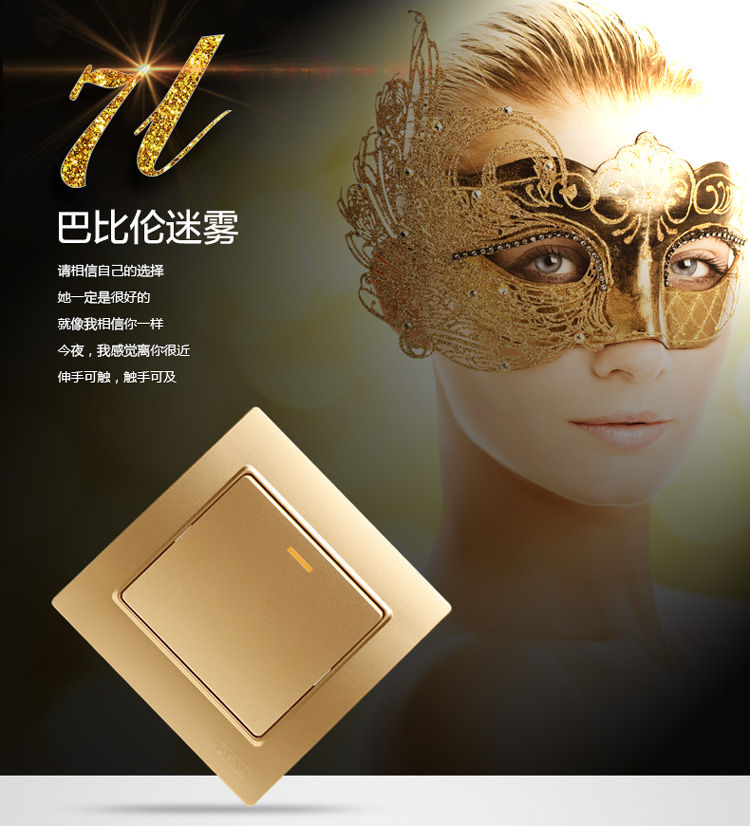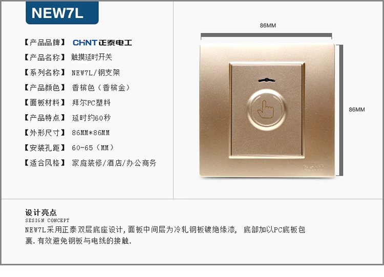 正泰(CHNT) 正泰开关插座 7L香槟金触摸延时面板内嵌钢架开关插座面板