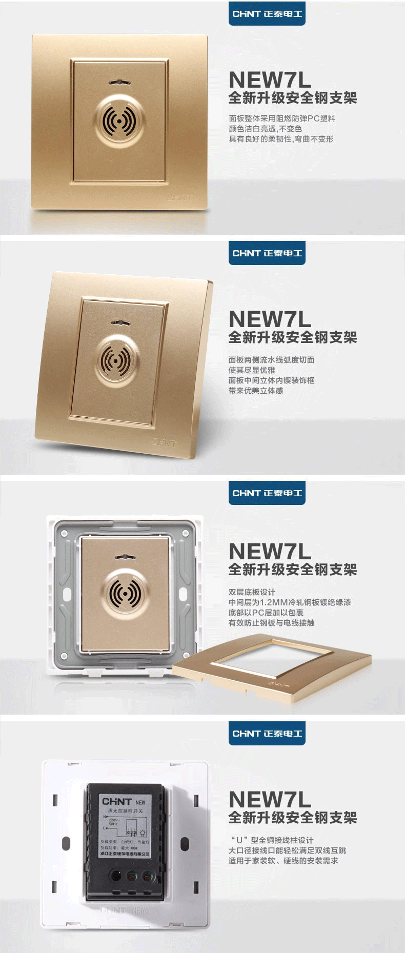 正泰(CHNT) 正泰电工 钢架墙壁开关插座面板 NEW7L香槟金色 声光控开关控面板