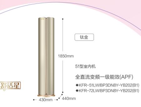 美的(Midea)3匹 舒适星 一级能效 无风感 变频冷暖 智能WiFi圆柱柜机 KFR-72LW/BP3DN8Y-YB302(B1)钛金