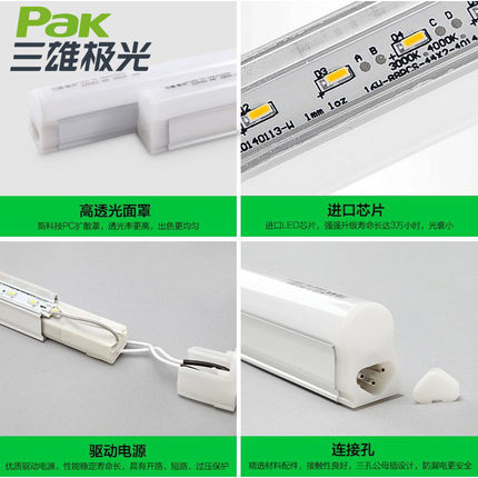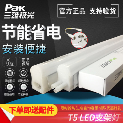 三雄极光LED灯管T5一体化节能支架1.2米全套超亮客厅橱柜节能灯管