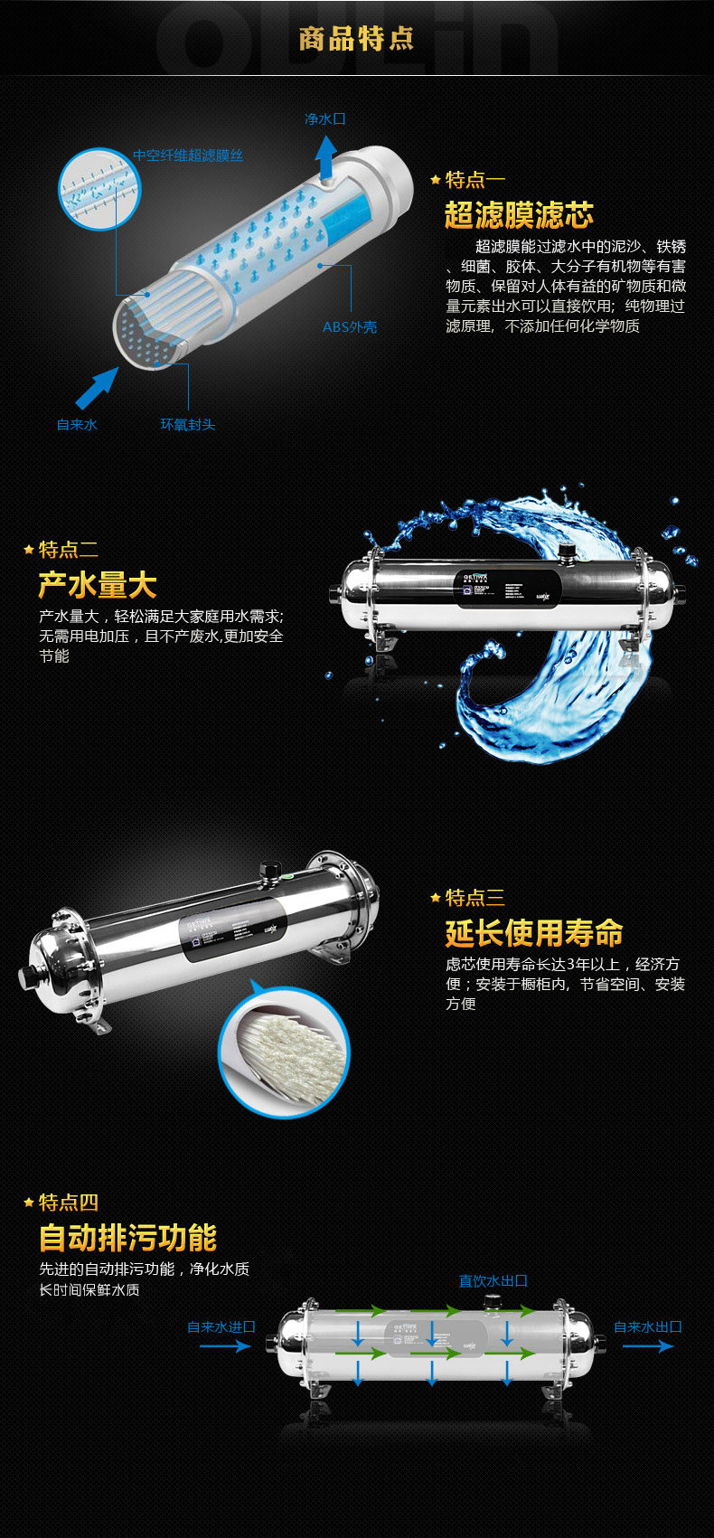 不锈钢打造 大流量 超滤膜 中央净水