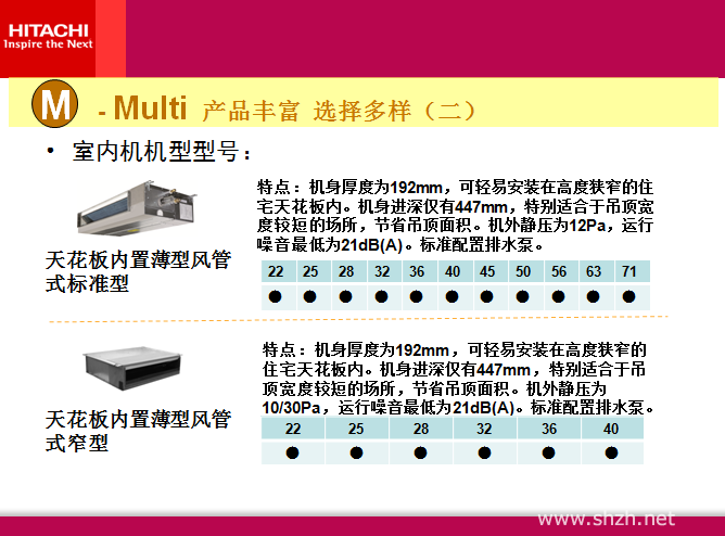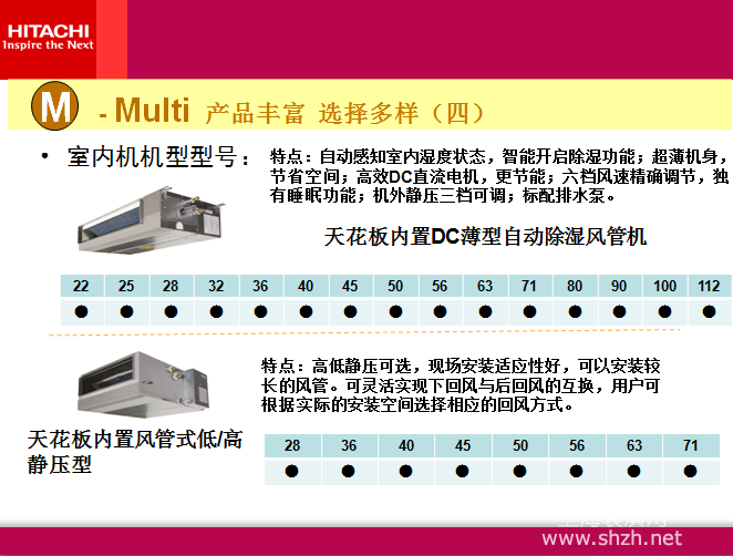 日立VAM mini系列,超薄室内机,室内机静音低至21dB,90秒快速启动,真正的中央空调连接方式-单管制连接,日立无级变频技术,节能更显著,薄型风管机承载日立独有的超低温自动除湿模块,真正实现超精度控制室内湿度.