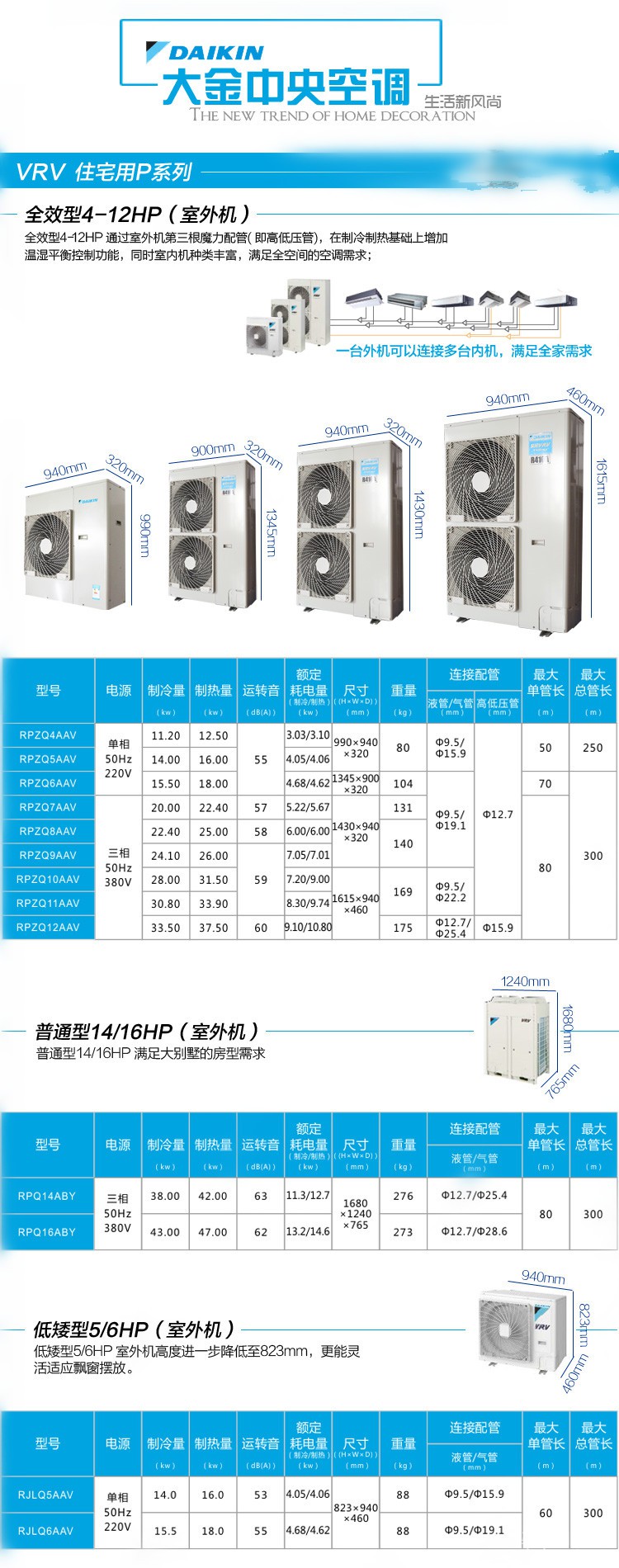 大金中央空调 家用 1匹 风管机VRV-P变频一拖四FXDP25QVCP一拖二