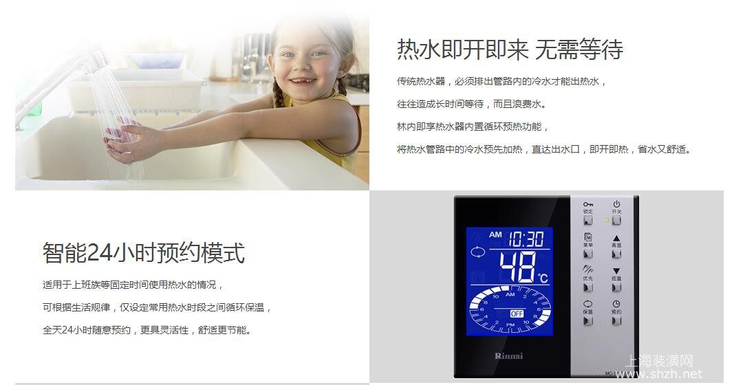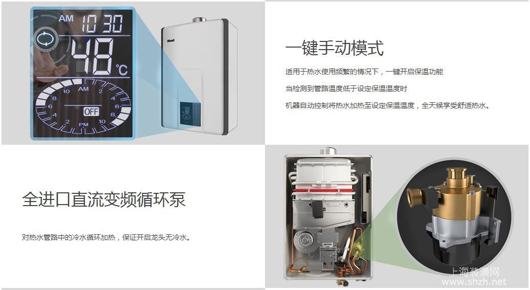 热水即开即来,无需等待,手动/智能24小时预约模式,提前预约热水